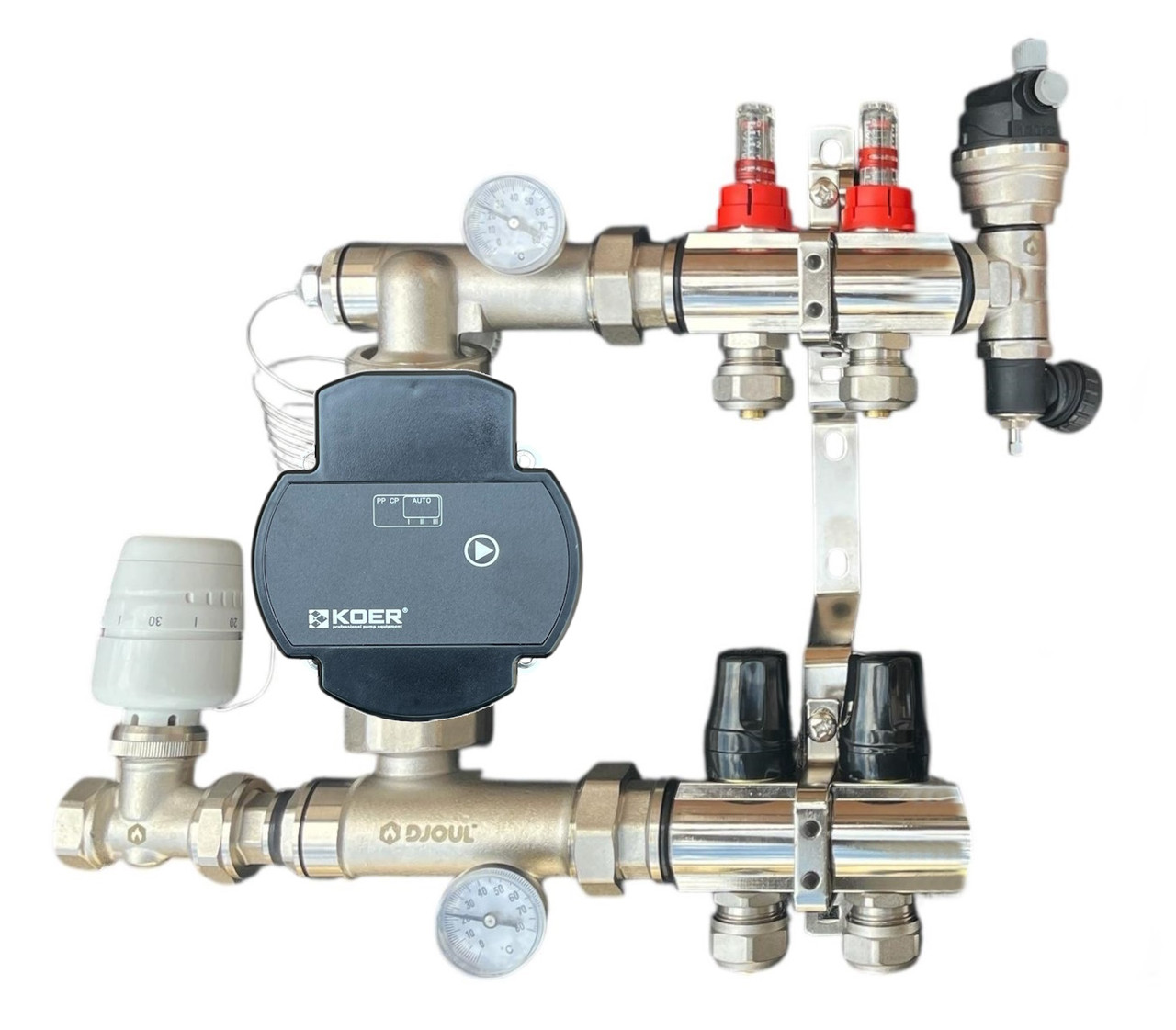 Колектор для теплої підлоги в зборі на 2 контури, латунний (без насоса)"DJOUL" Турція